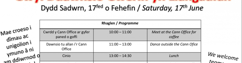 Llangadfan Day of Dance 2017 June 17, 2017 This year’s Llangadfan Day of Dance will be held on Saturday 17th June at the Cann Office. Arrangements as usual: see the attached poster. Bar meals will be available to order on the day. Looking forward to seeing you all!